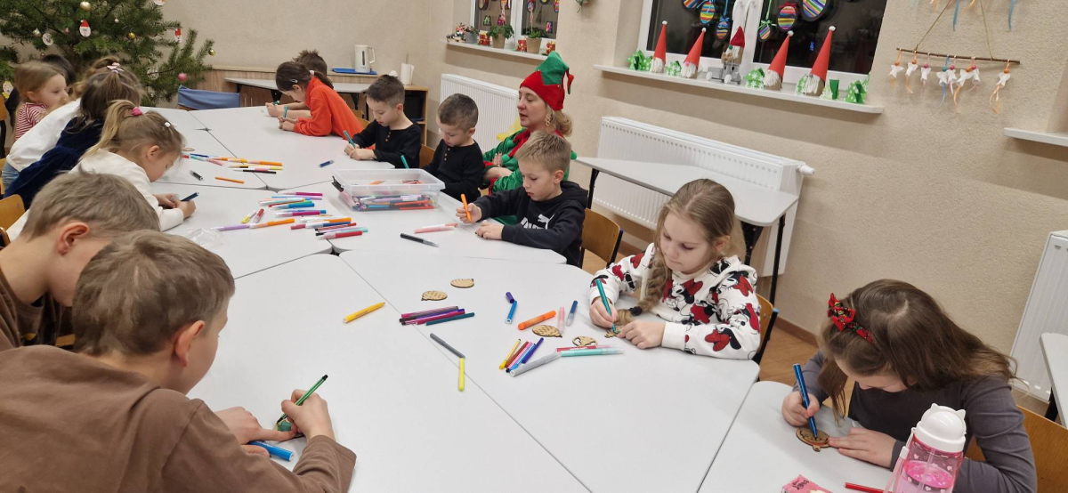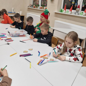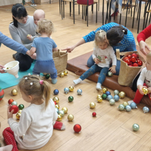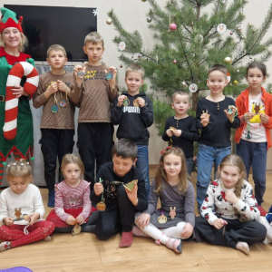 Dzieci z zapałem segregowały bombki, tworzyły świąteczne ozdoby, brały udział w ruchowych zmaganiach w fabryce elfów, a na zakończenie cieszyły się zabawami z bańkami mydlanymi. Było radośnie, aktywnie i bardzo świątecznie!