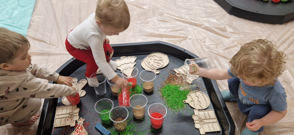 Świąteczne zajęcia sensoryczne dla maluszków. Grupa starsza uczestniczyła w Świątecznej Fabryce Elfów️.