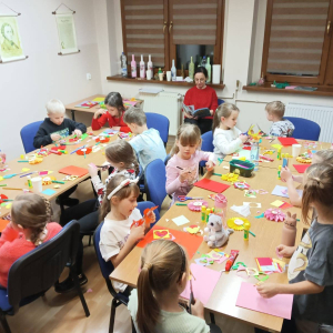 W poniedziałkowe popołudnie w bibliotece odbyły się zajęcia plastyczne dla dzieci. Z okazji zbliżającego się Dnia Babci i Dziadka uczestnicy wykonali przepiękne prezenty na to święto. Z pewnością praca dzieci zostanie doceniona, bo nie ma nic cenniejszego niż prezent zrobiony własnoręcznie.