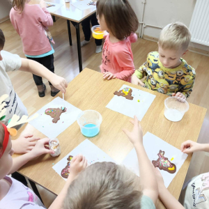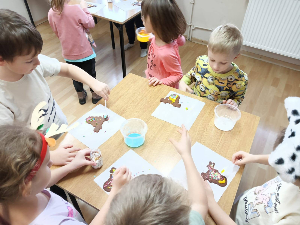 Dzieci z uwagą wysłuchały świątecznej bajki, a następnie z wielkim zaangażowaniem lukrowały pierniczki.