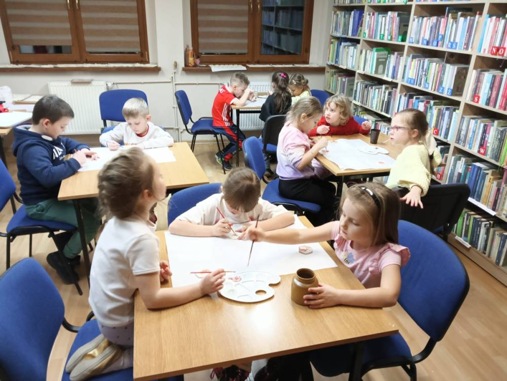 Przygotowane prace muszą teraz wyschnąć, aby na kolejnych zajęciach mogły zostać udekorowane.