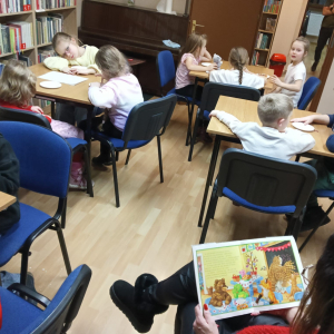 W przerwie dzieci zostały poczęstowane naleśnikami z okazji Dnia Naleśnika, który przypada właśnie 2 lutego. Podczas degustacji wysłuchały bajki „Franklin i Walentynki”.