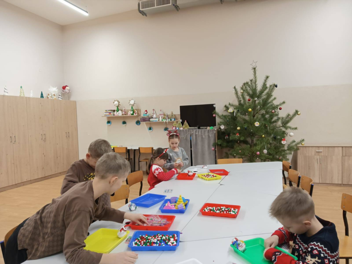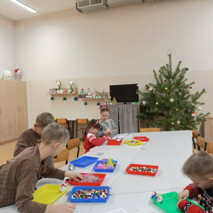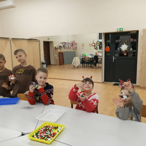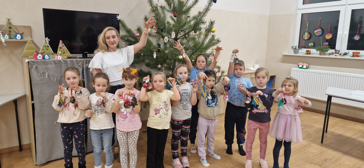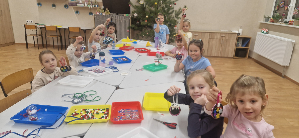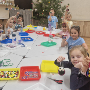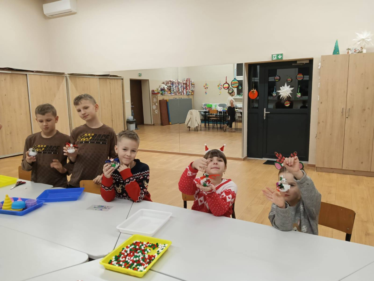 Dzieci w tym dniu tworzyły bombki na choinkę. Do dyspozycji miały pompony, sztuczny śnieg oraz drewniane, świąteczne ozdoby. Każde dziecko wykonało trzy wyjątkowe bombki, pełne kreatywności i świątecznego uroku.