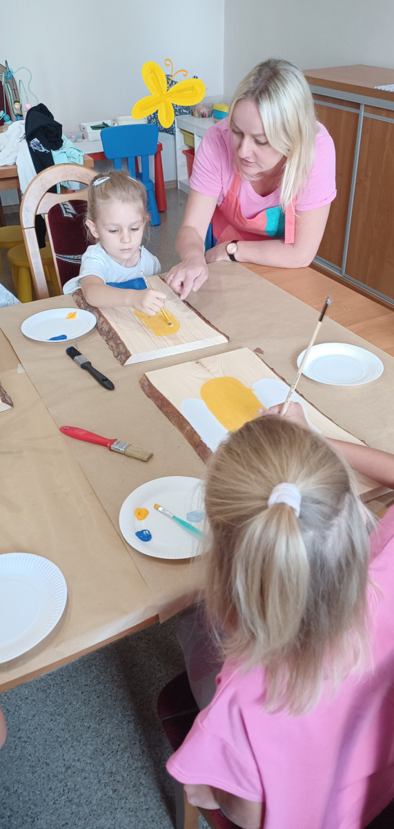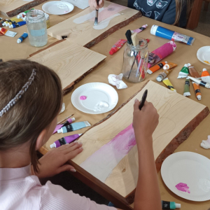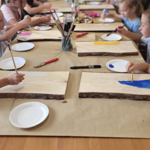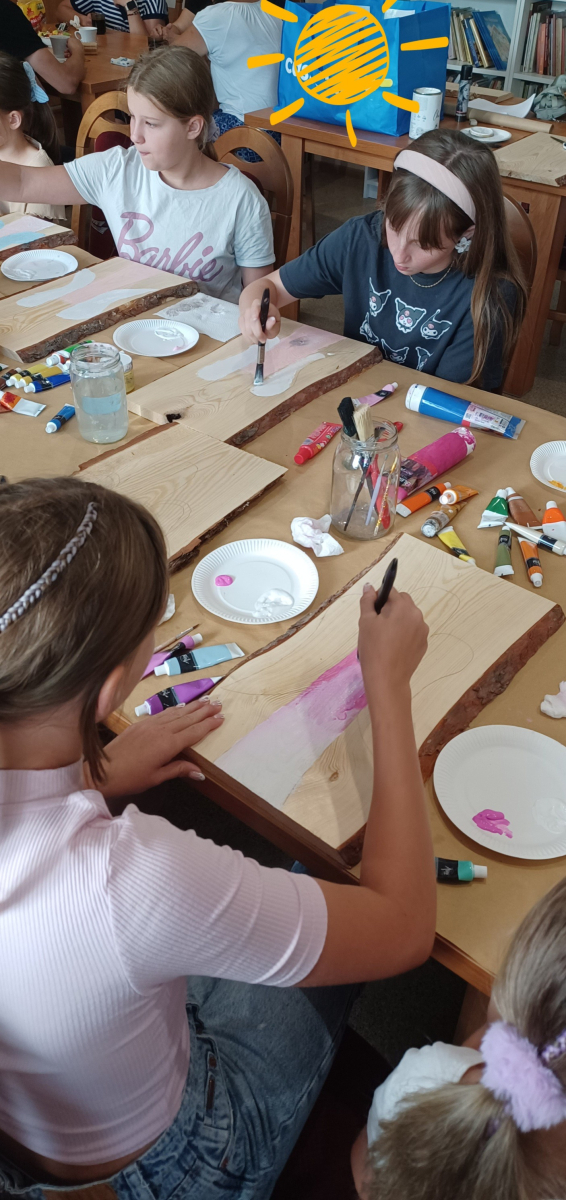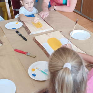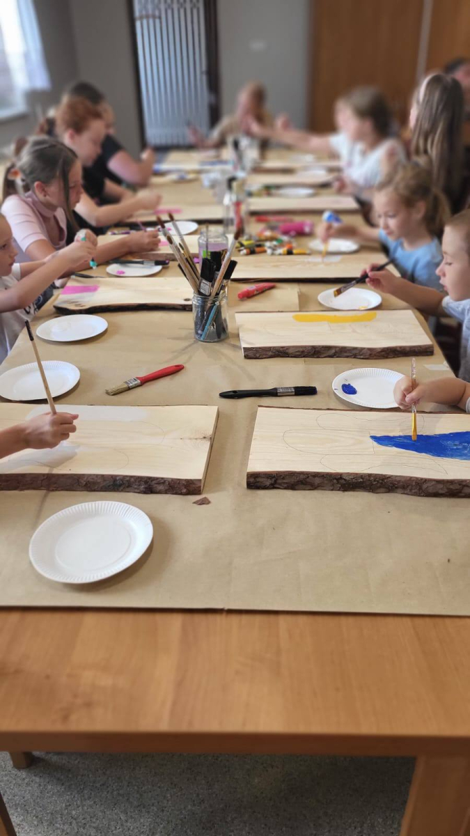 Uczestnicy mieli okazję stworzyć własne dzieła, malując na desce sosnowej za pomocą farb akrylowych.