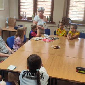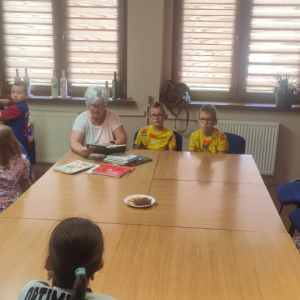 Panie pasjonatki, a w szczególności Pani Bronisława, z ogromnym zaangażowaniem przeczytały dzieciom fragment książki „Legendy, podania i gawędy z Gminy Lyski” autorstwa Jerzego Buczyńskiego.