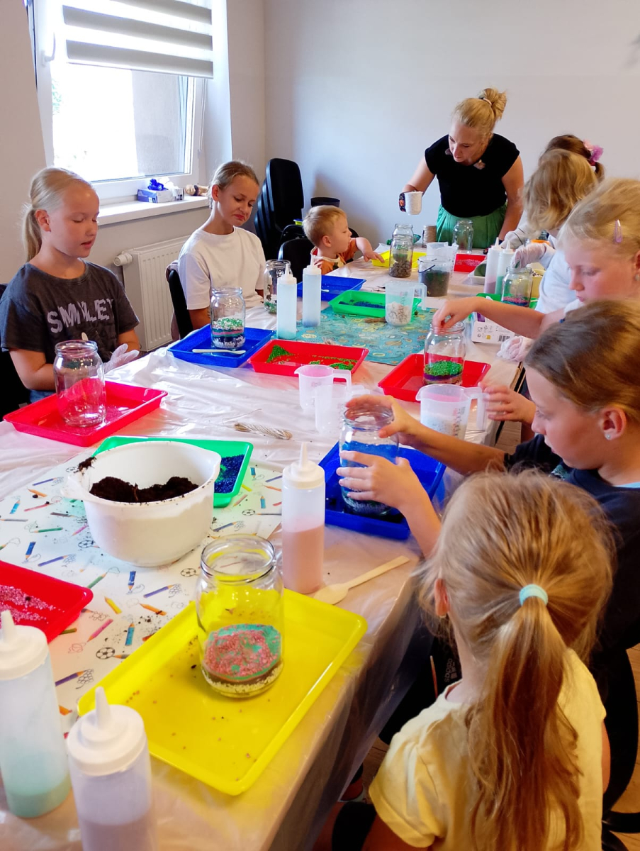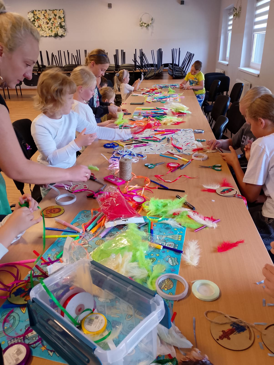 4 sierpnia w OSP Zwonowice odbyły się kreatywne warsztaty, podczas których dzieci (młodsze i starsze) oraz niektórzy opiekunowie tworzyli lasy w słoikach i własne łapacze snów. Zajęcia poprowadziła pani Magda, a wspólna praca sprawiła wszystkim mnóstwo radości!